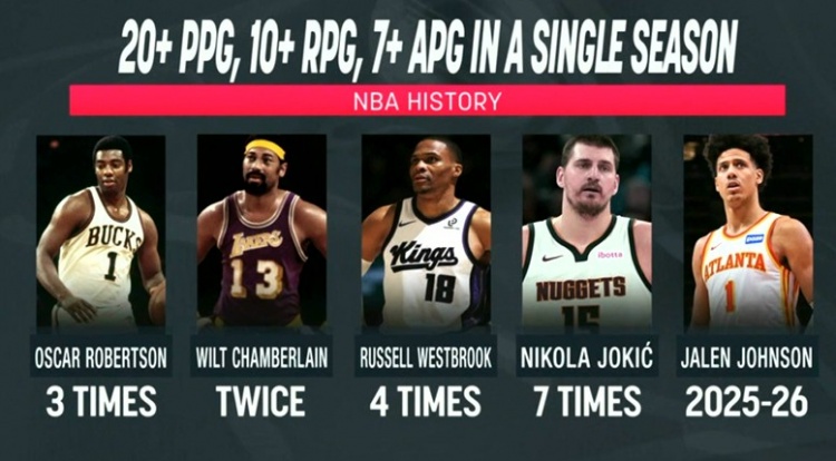 bob半岛体育官方入口-赛季场均20+10+7榜:约基奇7次威少4次 大O3次大帅2次 杰伦约有望
